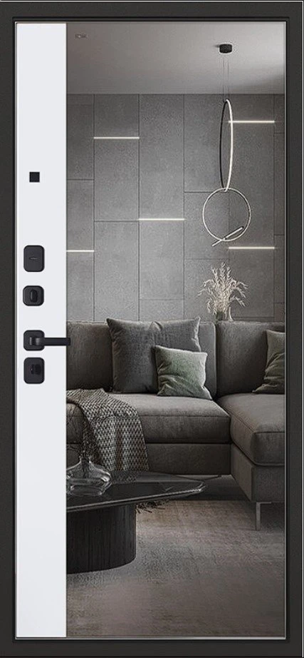 Надежная входная Дверь Scandi с зеркалом премиум класса по цене 45 275 руб. Большая толщина стали защитит от проникновения в ваш дом, квартиру или коттедж. Используется очень качественная фурнитура: замки, цилиндры, ручки, защелки. Покрытие и отделка двери изготовлено под внимательным контролем производителя. Дверь имеет долгий срок службы и гарантию.