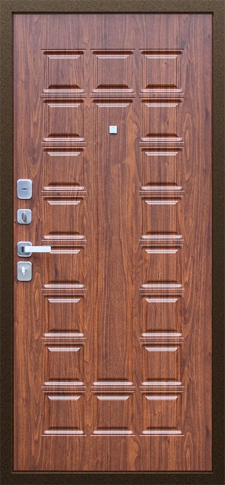 Надежная входная Дверь Спартак Орех темный премиум класса по цене 34 175 руб. Большая толщина стали защитит от проникновения в ваш дом, квартиру или коттедж. Используется очень качественная фурнитура: замки, цилиндры, ручки, защелки. Покрытие и отделка двери изготовлено под внимательным контролем производителя. Дверь имеет долгий срок службы и гарантию.